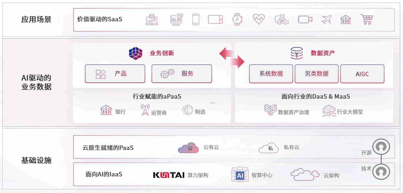 数字时代,,围绕企业数字化转型的关键要素,,,,腾博tengbo9885官网数码开创性的提出数云融合战略和技术体系框架,,,着力在云原生、、数字原生、、、AI原生和信创产业上架构产品和服务能力,,为处在不同数字化转型阶段的快消零售、、、汽车、、、、金融、、、医疗、、、政企、、、、教育、、运营商等行业客户提供泛在的敏捷IT能力和融合的数据驱动能力,,构建跨界融合创新的数字业务场景和新业务模式,,,助力企业级客户建立面向未来的核心能力和竞争优势,,全面推动社会的数字化、、、、智能化转型升级。。。